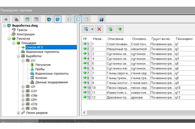 - Создание и редактирование инженерно-геологических элементов (ИГЭ)