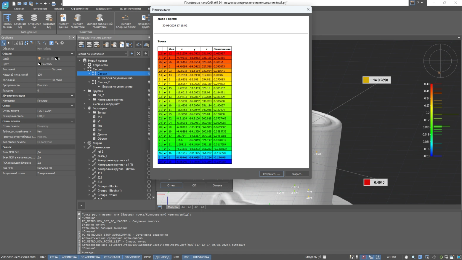 Возможность отображения рассчитанного отклонения каждого измерения от эталонной модели и визуализация полученных данных с помощью создания выносок