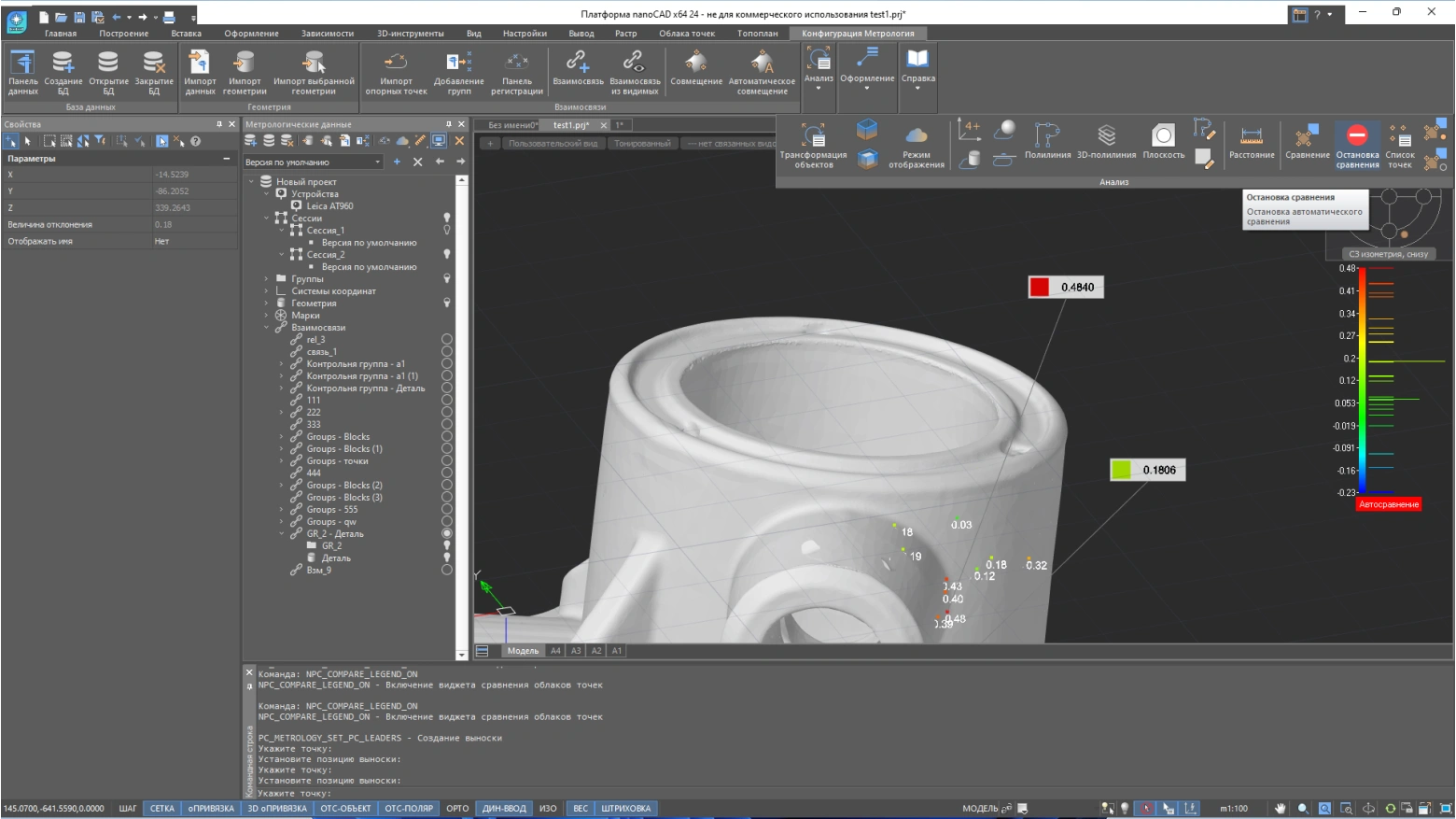 Конфигурация «Метрология» – компонент nanoCAD Облака точек для автоматизации метрологического контроля в авиастроении, судостроении, автомобилестроении, сборке космических аппаратов, промышленном строительстве, металлургии.