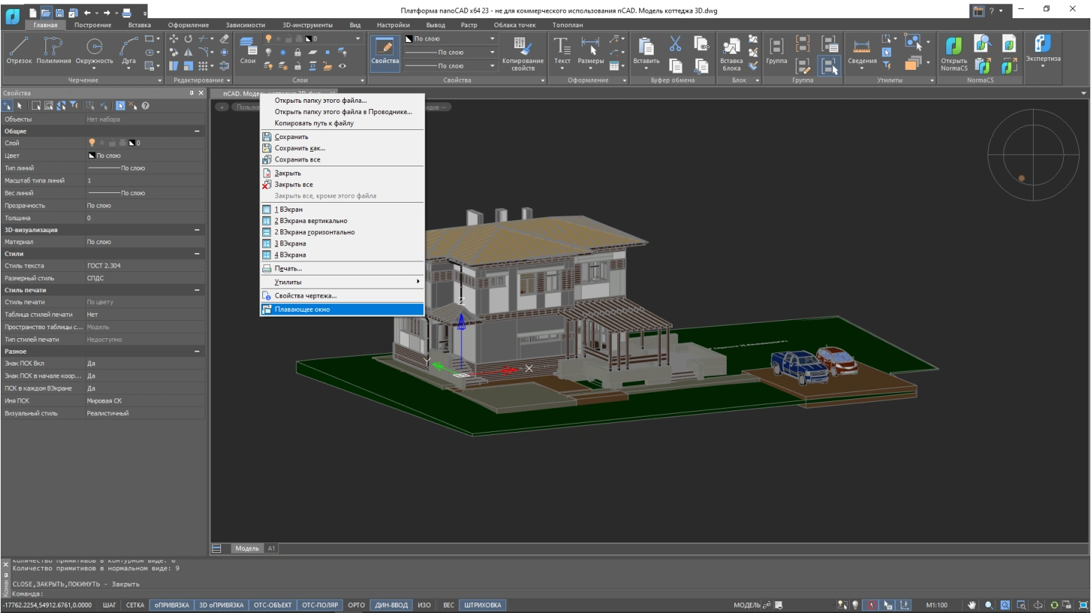 Любую вкладку чертежа теперь можно отделить от окна Платформы nanoCAD, сделав ее плавающей. Этот функционал удобен в тех случаях, когда требуется разделить рабочее пространство и видеть несколько файлов. При этом в каждом открепленном окне можно выбрать предпочтительный тип интерфейса