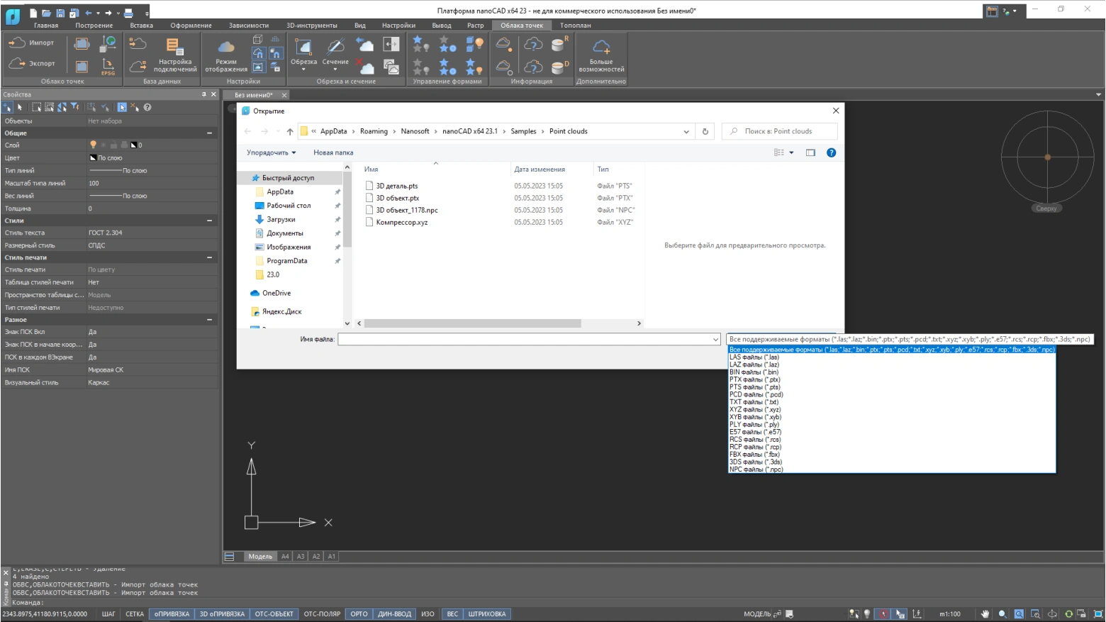 Позволяет загружать в *.dwg-среду облака точек различных форматов (LAS, BIN, PTS, XYZ, PLY, E57, RCS) и использовать их в качестве подложек. К точкам облака можно привязываться